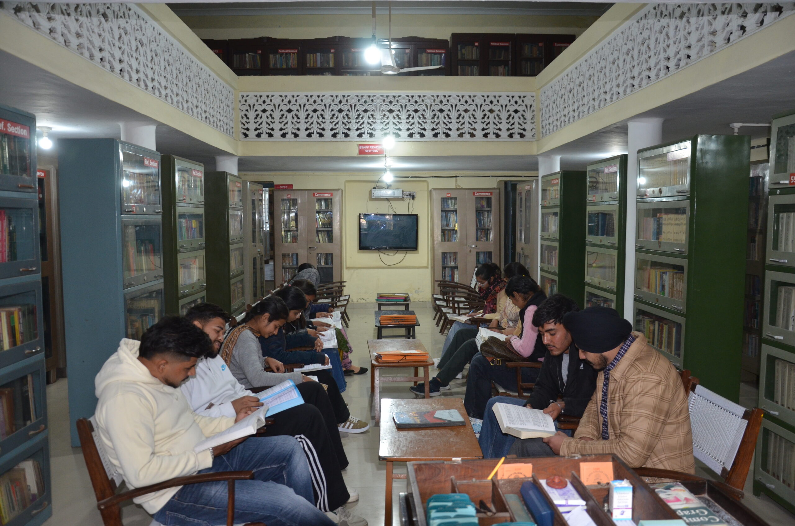 Library brings academic ambience in the educational institutions. Library “The Reservoir of Knowledge” has a paradigm shift from document to information. The library building and material inside it, no longer define the concept of academic library in the present scenario. Library is a living organism consisting of library documents, staff, and Premises organized and functioning to collect, conserve and exploit books. We may say it is such an ocean whence the streams of knowledge incessantly flow forth to quench the thirst of the knowledge –hungry clientele. The flow of such streams is very diligently controlled by the earnest zeal and submission of the library Staff. Library building is housed in a magnificent two storied building having an area of 4650 sq metre. The library houses nearly 50,000 volumes with a seating accommodation for 250 readers. Two Reading halls are enriched with journals, periodicals and newspapers. These current sources of information are available for Boys & Girls separately.